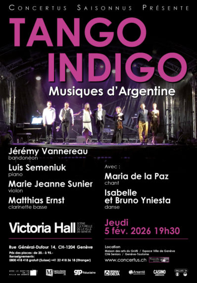 Cuarteto Tango Indigo avec Maria de la Paz (chant), Isabelle et Bruno Yniesta (danse)