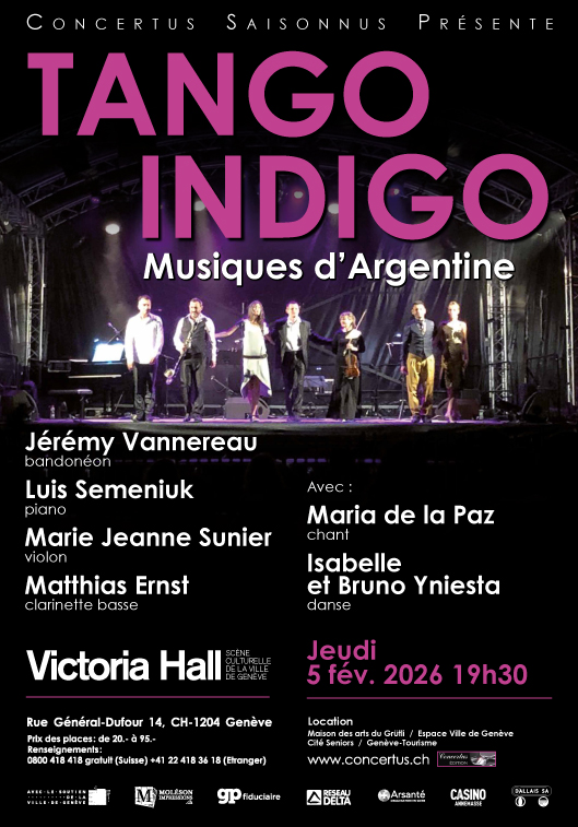 Cuarteto Tango Indigo avec Maria de la Paz (chant), Isabelle et Bruno Yniesta (danse)